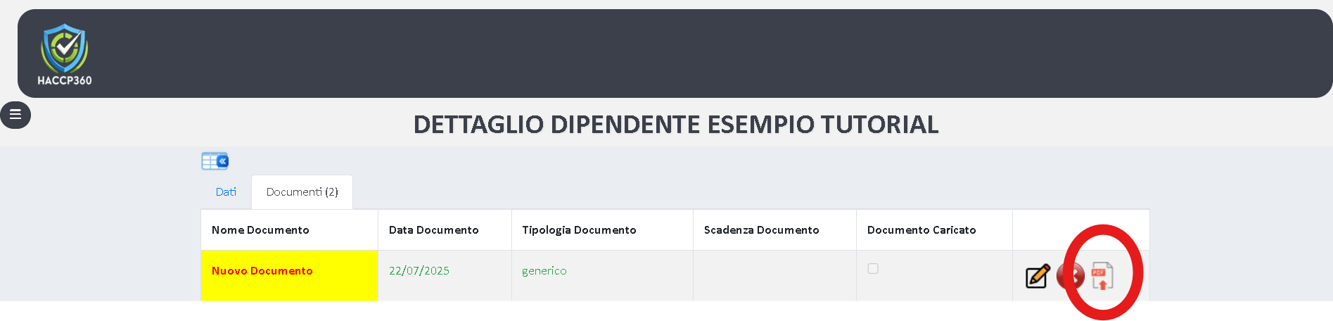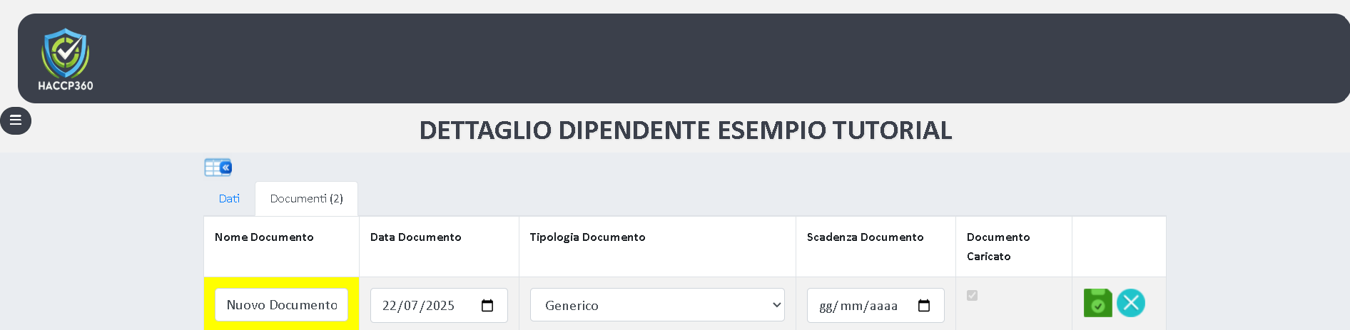 Una volta fatte queste operazioni, utili per te per avere sempre sotto controllo lo stato dei documenti dei tuoi dipendenti, clicca sul tasto verde a forma di floppy disk che trovi dove prima era presente la matita così da effettuare i lsalvataggio delle informaizoni inserite.